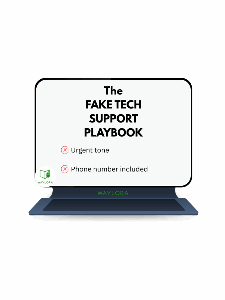 Download your free Fake Tech Support Playbook and join Waylora's early-access launch list.